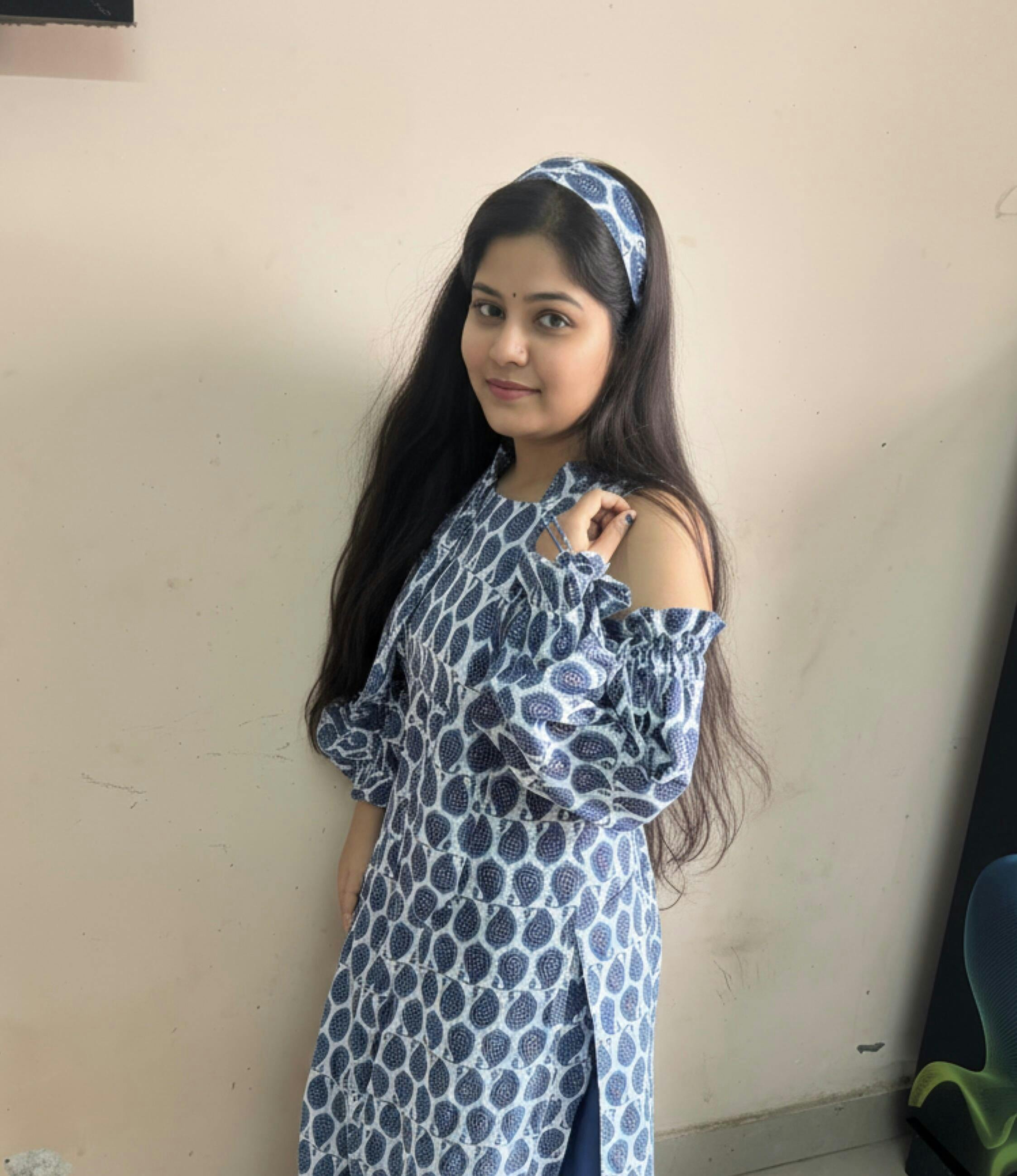 Step into effortless elegance with this Blue Ethnic Bagh Print Cold-Shoulder Pure Cotton Corset Kurti Set. crafted from pure cotton with soft lining for ultimate comfort. Designed with a stylish halter neckline, trendy cold-shoulder balloon sleeves, and a corset lace-up back, this outfit beautifully merges modern and ethnic aesthetics. The kurta comes with a side zip closure for a perfect fit, while the wide-leg palazzo pants complete the chic co-ord look.